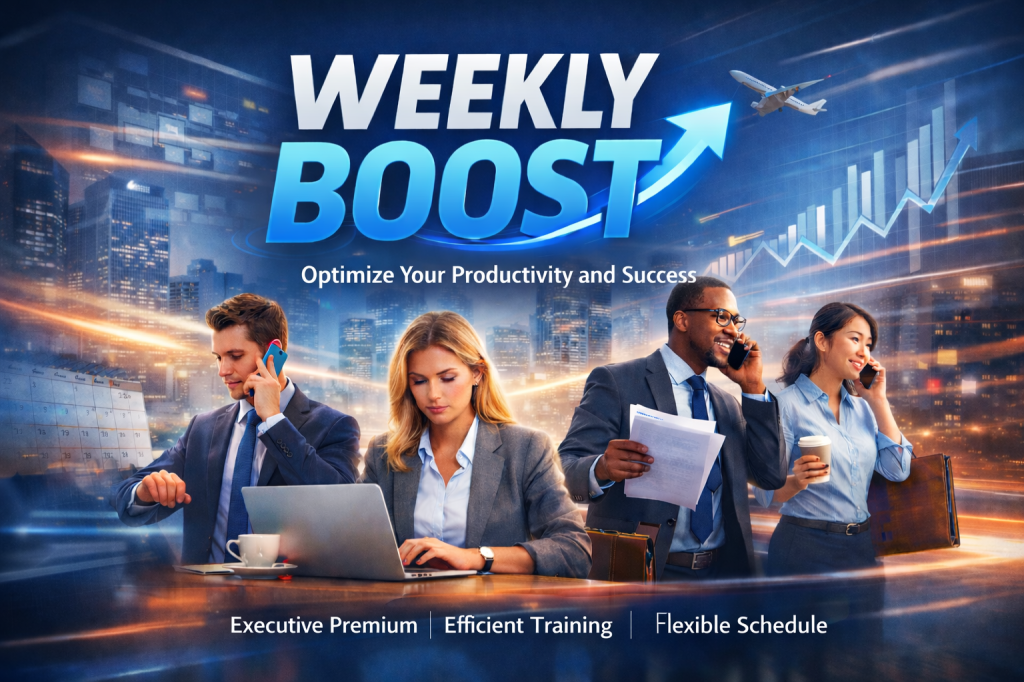 - Designed for busy business professionals who value efficiency and consistency. Focused, straight-to-the-point sessions help you make measurable progress. With flexible scheduling and a high-level, results-driven approach, Weekly Boost fits seamlessly into demanding agendas while delivering clarity, confidence, and performance growth.